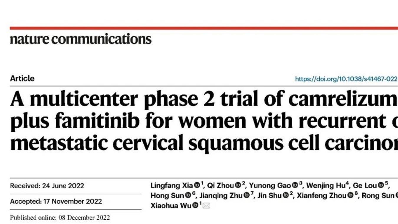 GA黄金甲创新药卡瑞利珠单抗联合法米替尼用于复发或转移性宫颈癌研究结果荣登JCO